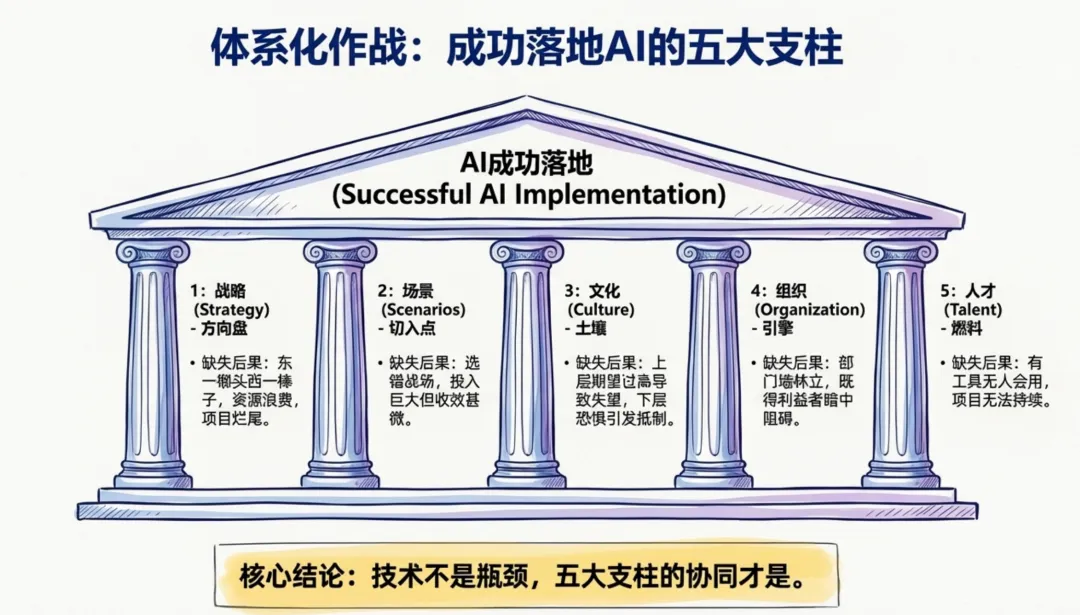 启示:AI不是魔法,不能无中生有,需要数字化基础。AI落地五大支柱:为什么你的项目总是失败?