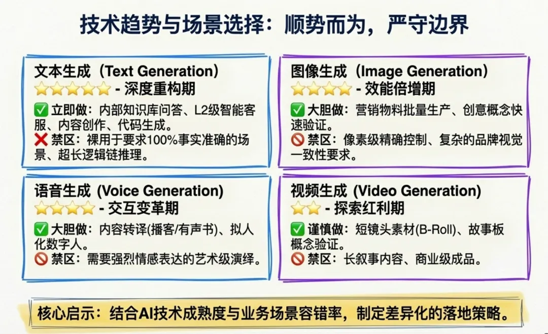 这个三层评估框架非常重要,可以用来评估任何场景是否适合AI化: