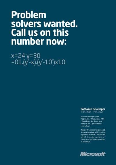 微软趣味招聘广告:诚邀可解决此问题者