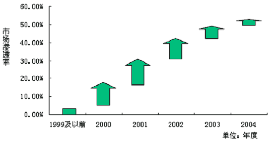 图1-3:1999年-2004年管理咨询市场渗透率增长情况