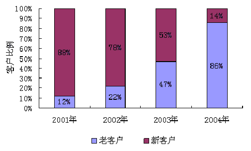 二、2001年-2004年管理咨询服务新老客户比例变化情况