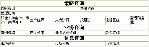 表2咨询业的纵向分类