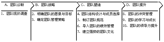 这个“十步曲”的流程完整覆盖了企业团队运作的方方面面,能够提供团队从无到有、从小到大、从弱到强的一揽子解决方案。