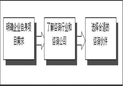 那么企业究竟该如何选择一家“合适的咨询伙伴”的呢?对咨询伙伴的选择一般主要分为三个步骤:明确企业需求;了解咨询行业、选择咨询伙伴。