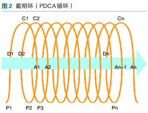 任何系统的存在,都有其背后的逻辑性。管理学中最能表达清楚这种逻辑关系的是著名的“戴明环”(PDCA循环),即:P- 计划→D-执行→C-检查→A-调整→P′-新的计划(又一个新循环开始)。如图2所示。同样的,绩效管理也有一个PDCA 的循环过程。