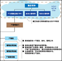 IT建设开展得比较好的企业,都设有专门的CIO职位,并成立信息化领导委员会,如下图所示,由集团高层领导亲自任命CIO,并与其他主管领导一起共同构成信息化领导委员会,从企业战略发展的角度对信息化提出指导。在CIO领导下的IT管理部门,对企业IT管控、管理应用系统、生产运营系统以及IT基础设施等进行统一的管理。