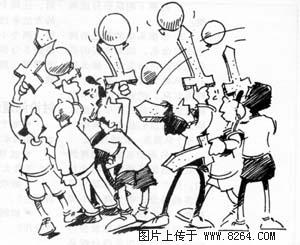 1.选出几个队员做监护员。让监护员注意观察是否有人用剑或用气球击打对手。一旦发现这种情况,监护员要立刻吹哨,暂停比赛,并向培训专员通报情况。