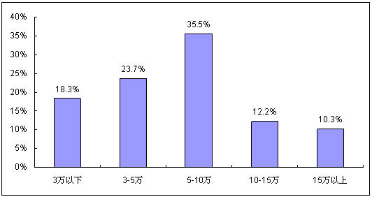 动漫人才的薪酬区间分布显示,年度薪酬在5万以上的人数达到58%,其中薪酬水平在5-10万范围内的员工人数占到35.5%,薪酬水平在10—15万元的员工人数为12.2%,而10.3%的人年薪高达15万元以上,只有42%的员工年薪在5万元以内,其中年薪不足3万元的只有18.3%。