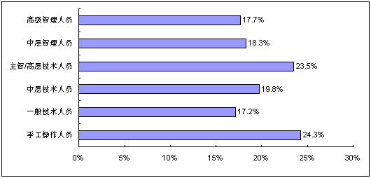 中高层人员是企业的核心资源,而流动率偏高以及人才供需矛盾的加剧使得中高层人员的薪资增幅明显。