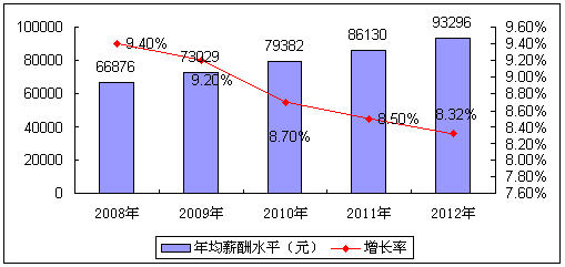 图6 2008-2012年半导体行业年均薪酬水平及涨幅预测