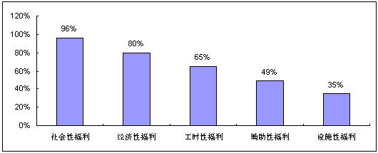 第五,消费电子行业的福利多集中于社会性福利和经济性福利。根据赛迪顾问2007年调查分析,目前在消费电子行业社会性福利应用较为普遍,享受的人员比例达到96%。其次是经济性福利为80%,设施性福利最低,覆盖比例为35%。目前,消费电子行业的福利仍然局限在满足员工基本生活保障方面,对员工其它方面的需求关注的较少,例如利润分享计划和职业发展规划等福利项目上较为少见。