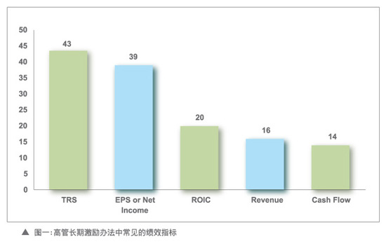 根据华信惠悦2007年的调查(Linking Executive Pay to Optimal Performance Metrics and Goals),在美国Fortune250的公司内,“整体股东回报”是高管长期激励办法内最常见的绩效指标。但“整体股东回报”受投资人行为及市场预期影响而波动,不是高管所能控制的。因此,也有公司选择采用与“整体股东回报”有关联的项目如:ROIC,作为长期激励办法内的绩效指标(见图一)。