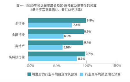 美国金融危机一夜秋风奔袭全球,中国经济也初感料峭;资本市场与产业经济的“多米诺效应”,把危机意识扩展到各行各业。华信惠悦于2008年10月进行了《2009年预计薪资调整率和经济状况、劳动力市场展望》调研,旨在了解各公司如何看待金融危机,及危机在何种程度上影响公司所在行业和其未来发展,进而了解公司所采取的一系列包括调整薪酬增长预算在内的应对措施。据调研发现,近半数企业修正了2008年上半年所核定的2009年度薪酬增长预算,面对未来发展的不确定性,众企业表现出谨慎的态度。