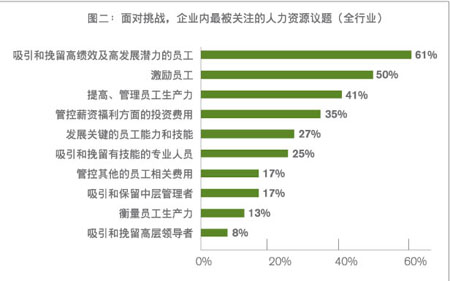 “吸引和保留高绩效及高潜力员工”仍是企业在面临外界挑战时最关注的人力资源议题