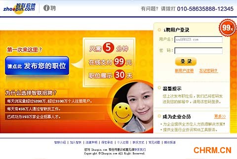 据悉,智联招聘推出的这款业务产品名为“i聘”(99.zhaopin.com),宣称“只需5分钟轻松注册并填写招聘信息,在线支付99元,您的职位即可在网站中展示30天。为您节约招聘成本,实现最佳的招聘效果。”