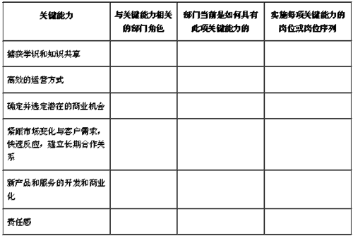 可以借助下面的表格,梳理并确定部门/团队角色-以关键能力为基础描述角色并确定部门目前是如何履行这些角色的。
