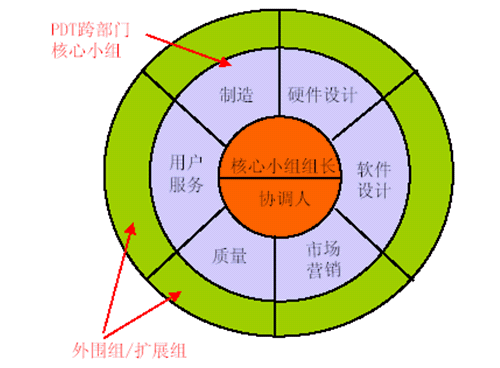 PDT的基本特征是其成员来自不同的部门,包括财务、制造、市场、采购、研发、质量和技术支援。各位成员代表自己的功能部门,承诺在PDT经理的领导下共同工作,完成业务目标。