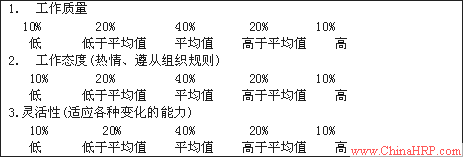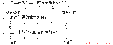 量表评定法是绩效评定中最古老而又最流行的方法。此方法要求评定者对被评价者在一系列与工作相关的特征上做出程度评定。比如对工作的质量、工作态度、与工作有关的知识技能进行五点评定。