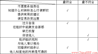 强迫选择法使用一些描述高绩效或低绩效的行为特征,要求评定者选出最适合被评人绩效的特征,然后再选出最不适合描述被评人绩效的特征。图3给出了强迫选择法的一个示例。