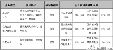 表1:不同类型企业“福利薪酬比”差异比较
