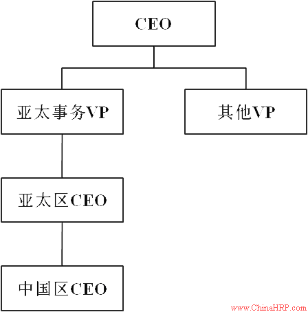 在这种结构下,中国区的CEO需要向亚太区的CEO汇报,亚太区CEO向全球负责亚太事务的副总裁汇报,该副总可能还负责拉丁等其他大区事务。全球CEO直接管辖各个大区的副总裁。