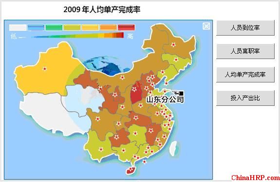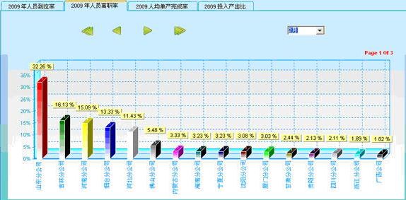 于是,他马上点击“2009年人员离职率”分析,全集团各分支机构的第一季度的离职率情况都可以查询。