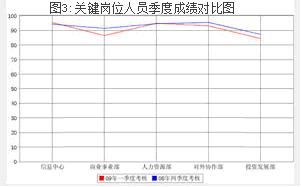 很快,该分公司2009年第一季度的人均单产变化趋势图、人力成本投入产出比趋势图(此两图略)和关键岗位人员季度成绩对比图(图3)赫然展现出来。