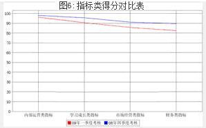 找到了山东分公司业绩异常下滑的重要缘由,王总决定再看看集团具体绩效指标的变动情况。他回到集团考核界面,打开了指标类得分对比表(图6),图中对最近两个考核周期的员工具体指标考核分数进行了对比。