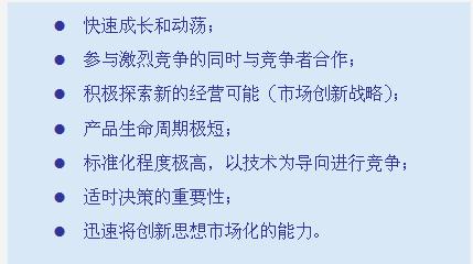 对于通信行业,我们不得不说这是迄今为止最活跃,发展最快,同时也是最动荡的知识密集型行业之一。从国际主流的行业研究结果(Kulkki, kosonen, 1999)来看,通信行业存在以下特点: