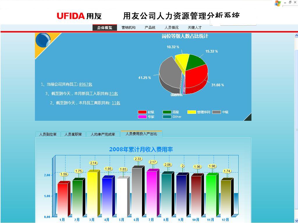 用友eHR5.5 在继续以往人力资源价值分析的产品优势基础上,着重对企业经营指标和人力绩效指标加强多角色、多维度和多层次的价值分析,分析指标历史、当前状况并预测未来走势,帮助CEO等企业决策者深入洞察企业运营真相。它主要解决人力资源部门的关键价值如何支撑的工具问题,不同于传统人事软件和eHR,是建立在业务协同和数据分析基础之上,对人力资源部关键价值的有效满足的支撑工具。