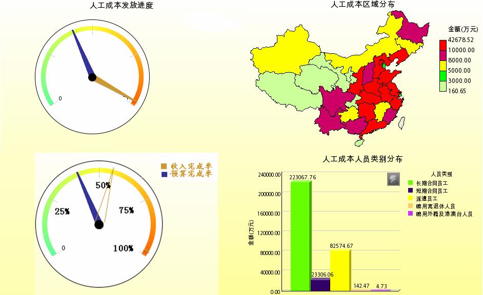 用友eHR5.5 支持多数据源和多种数据库类型,支持任务调度(可以用来定时刷新报表数据,优化报表展现速度),可以分析指标历史、当前状况并预测未来指标走势。实时监测的指标如下: