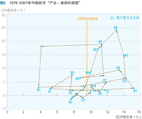 另外,今年7月份,我在一篇文章中作了一个从1978年到2007年的“产出-通胀环路图”(见图2),来试图解释为什么本次危机哪怕是出现滞涨也不会改变中国经济长期增长的趋势。