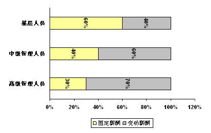 2、中级管理人员:在其总收入中,其固定工资比例有所降低,变动工资比例则相应提高。在企业中层管理人员的薪酬总额中,短期薪酬的比例有所下降,但仍是薪酬中的主要组成部分。