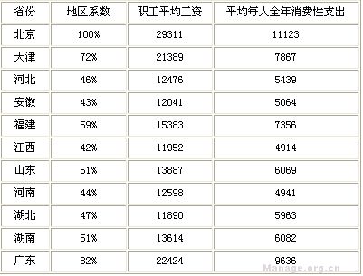 最理想的状况是在各个地区开展专项的薪酬调查,但是有很多现实的因素会影响多地区的薪酬调查的实现,比如各地的经济发展不均衡,很多地区无法开展专项薪酬调查,或者全面进行薪酬调查的成本过高。如果不能开展薪酬调查的话,可以利用国家统计局的相关数据来实现,如下图:(仅列举部分省市数据示意)