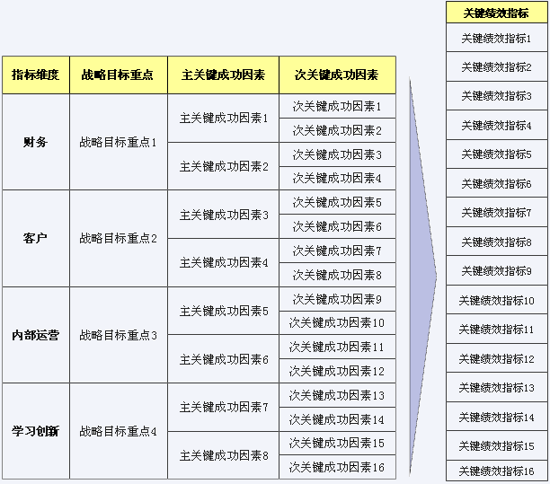 前面,我们已经将从战略目标分解下来的关键成功因素,从关键成功因素依次提取出关键的衡量指标,即关键绩效指标(KPI),如图5所示。