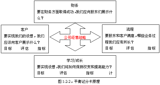 利用平衡记分卡作为核心战略管理的衡量系统,完成对关键过程的有效控制和资源的优化配置。如图1-2-3。