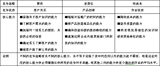 通常不同的客户价值主张与相对应的关键流程要求不同的核心能力,如表1-2-4。