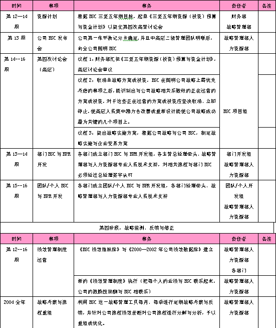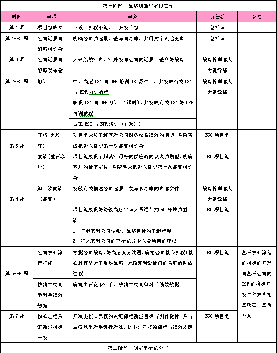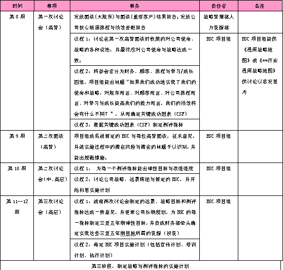 表1-2-8,深圳某高科技民营企业BSC项目时间表