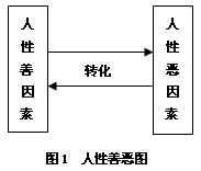 H人假设认为[1]:首先,人性是善与恶的综合体,这个善与恶包括动机、过程和结果。其次,人性善与恶之间可能发生转化,转化有时是一个漫长的过程,有时却可能发生在顷刻之间,管理上除了注意人性的本质内容,也须关注人性转化。第三,人具备区别于动物的特性,如创新性、能动性、社会性等。为了研究及实践的方便,我们把人的行为简单分为四种情况,一个人一个行为生发,必然有原因与结果,即使有时是无意识的行为,也是在人的潜意识作用下的结果,人的行为发生可分为四种(善因,恶果),(恶因,善果),(善因,善果),(恶因,恶果)。 这就是H人假论,也称之为人性假设――H理论(Humanity Hypothesis Theory)(张向前,2004)。