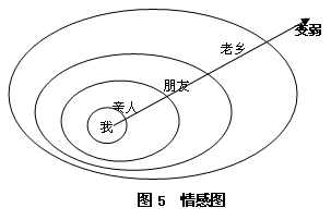 马斯洛需要层次理论第三层人有社会、爱情等情谊的需要。麦克莱兰激励需要理论认为人有归属的需要,即人从友爱中获得快乐,并总是设法避免因被某个团体拒之门外的痛苦,人渴望他人的喜爱和接纳。中国人讲究情面也有似于此,并愿意为之作出某些行为,所谓情面,即认识时间长了,深了,就有了情面,使得在各种正式组织之间都存在非正式组织,管理不仅仅考虑正式组织的作用,也需要考虑非正式组织所产生的情感的需要。个体在作出决定时很多时候考虑情感问题,或者说受情感左右,有时作出正确的决定,但有时却做出的错误的决定。影响人的情感因素,由近及远通常如下图5。