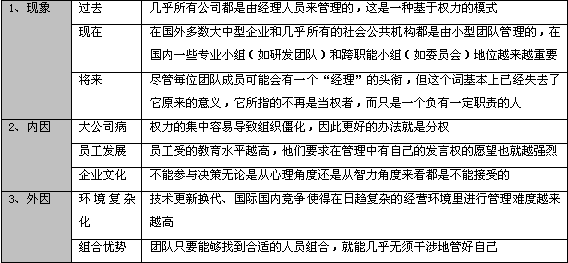 我们知道,上世纪最大的组织体制变革就是向“事业部”转型,与之相辅相成的管理体制变革就是向“团队”转型。