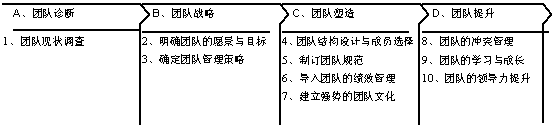 这个“十步曲”的流程完整覆盖了企业团队运作的方方面面,能够提供团队从无到有、从小到大、从弱到强的一揽子解决方案。
