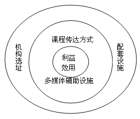 整体培训的具体意义可以从微观角度,借鉴“整体产品”(《营销管理》,Philip Kotler)的三层次理论模型(如图2)加以解释:任何一个培训项目都包括以下三个层次,它们的相辅相成、密切配合、共同决定培训过程的质量高低。(1)核心层:是整体培训概念中最基本的层次,它为培训对象提供最基本的利益和效用。培训理念、培训课程内容的选择、品牌教员、教员的沟通能力、教员的课堂组织管理能力、课堂气氛的营造、教员的激励方式。(2)辅助层:多媒体的视觉呈现、培训传达方式。(3)延伸层或配套层:培训机构的知名度、培训机构的选址、室内装修、生活配套设施的完备等等。