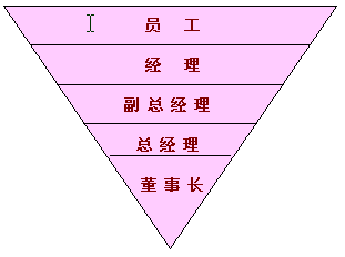教练技术是一个完全不同的文化知识,完全脱离工业革命的思考方式,很多公司在运用,很有效。这不是什么秘密,很简单,把刚才的三角调转过来:最上面一层是员工,最下面一层是董事长。