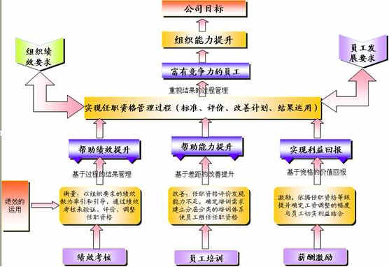 建立了任职资格为基础的人力资源管理平台,组织在符合资格条件的“人才库”中能公平、公正、客观的选拔、任用、开发人才,借用绩效考核衡量和评价绩效,用培训开发来改善和提高技能和能力,用激励机制实现价值的分配和转移,真正创造一个适合人才成长的土壤和环境,实现人才管理良性循环链,提升组织能力,最后实现组织目标。