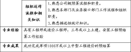 任职资格标准包括专业资格标准和行为标准。专业资格标准包括专业知识、专业经验、专业技能和专业成果。比如A企业预算类2级的专业资格标准如下: