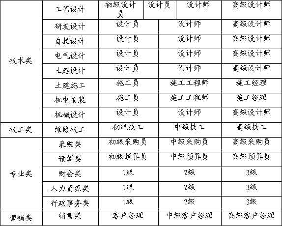 1.依据职类职种划分确定管理类和专业技术类员工发展通道(部分)