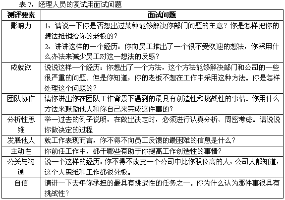 3,为CRT年列每一个测评要素,设计(或从问题库中选取)一些恰当的问题,然后按照其重要性为每张表选取7、8个左右的面试问题,应聘者在回答这些问题后就能判断哪位是最合适的人选。