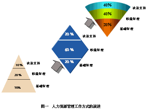 人力资源的管理理念一直在创新和变革,除了工作内容的变革,同样重要的是工作结构和目标的变革。从结构来讲,人力资源管理主要包括三个层面的工作内容,即基础管理、核心职能管理和领导决策支持三个层面。随着人力资源信息化程度的深入发展,人力资源管理者的工作重心在不断地发生转移,从而也将在工作方式上发生大的变革。