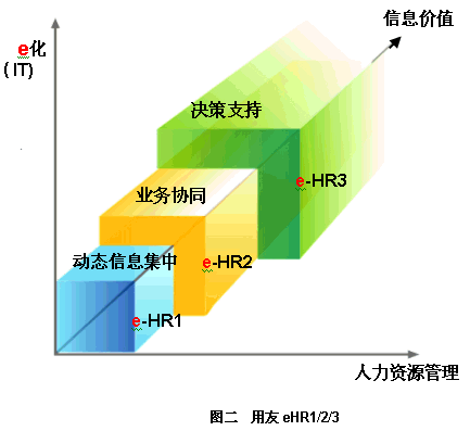 用友在企业管理信息化领域已经耕耘了19年,在HR信息化方面发展至今也有15年,通过多年来对广大用户的服务和分析,我们认为随着企业竞争的加剧、内外管控要求的加强、法律制度的不断完善,企业高层管理者需要更多的决策支持,人力资源也将日臻成为企业的重要战略资源。同时,随着网络、移动通信等信息技术的不断提高和飞速发展,我们发现,以简单“人力资源管理+IT”的二维方法来看待eHR已经越来越显得不够充分。企业最关注的是离散信息如何被整合、分析和利用,从而创造更大的信息价值,至此,信息价值已经成为人力资源管理的第三个维度。信息价值使人力资源的概念立体化、丰富化了,也使信息化与电子化有了本质区别。